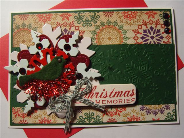 I added felt bird and snowflake chipboard as embellishment.
